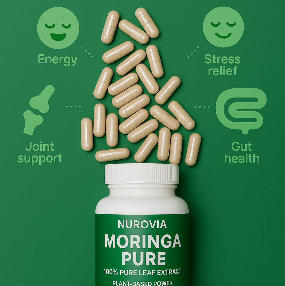 Experience the unparalleled benefits of Nurovia Moringa Extract Capsules, meticulously crafted from pure Moringa Oleifera leaves, delivering concentrated nutrients for a healthier, vegan-friendly lifestyle unmatched by competitors.
